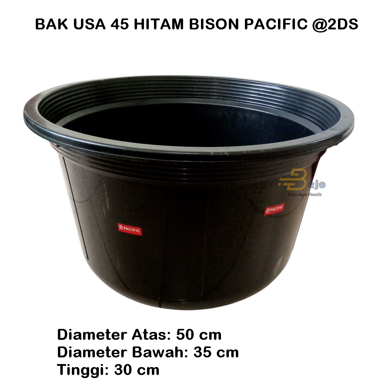 Bak USA 45 Hitam Pacific adalah waskom besar atau bak air berukuran cukup besar dengan kapasitas daya tampung mencapai 45 liter (maksimal). Ember ini berdesain klasik minimalis dengan warna permukaan hitam glossy / tidak butek. Dan dengan bahan pembuatan plastik yang tebal, bak ini cukup kuat dan tidak mudah rusak / pecah. Bak USA 45 Hitam Bison Pacific sangat berguna untuk pemakaian sehari-hari di rumah tangga atau kost. Anda dapat menggunakan bak ini untuk menampung air di kamar mandi dan mencuci pakaian.