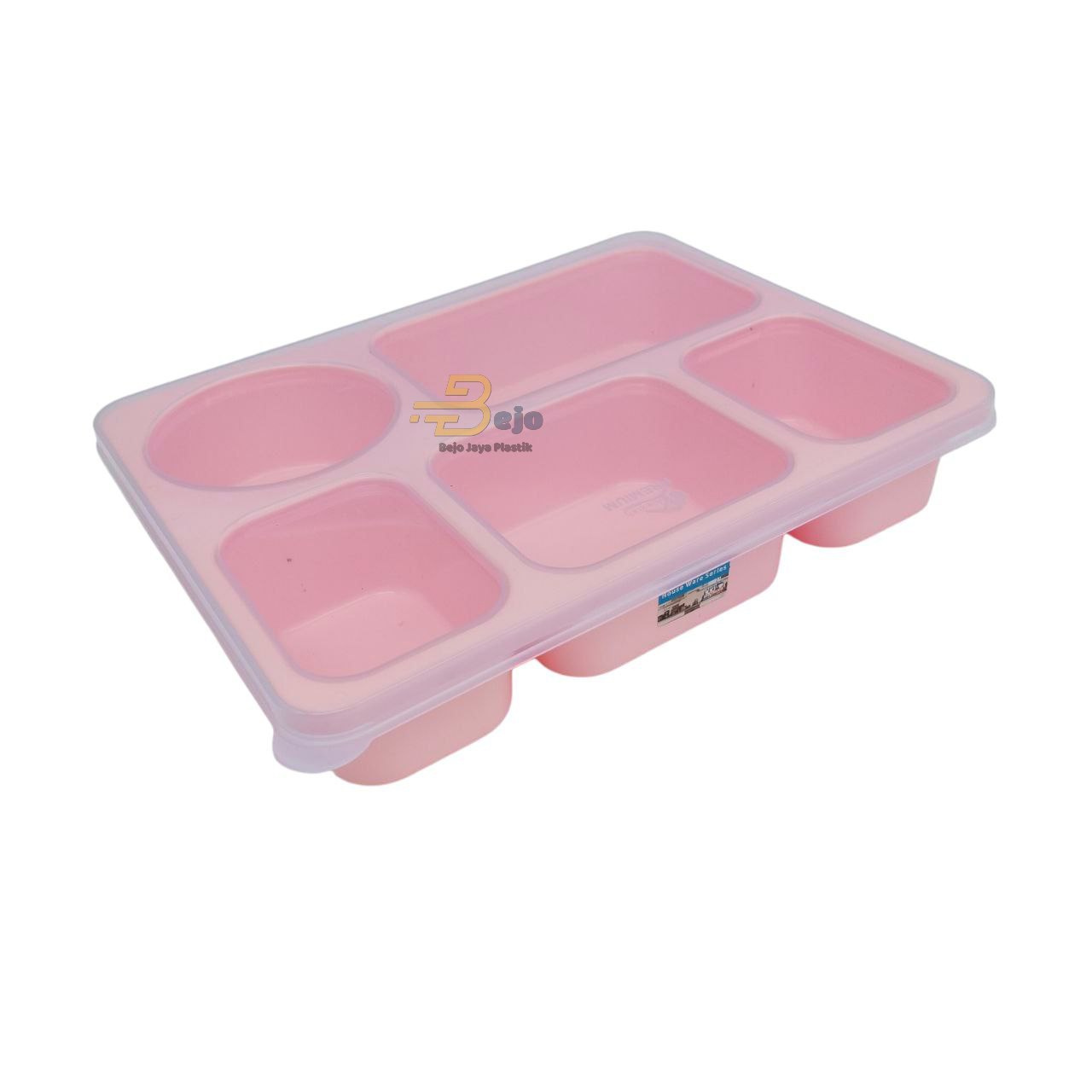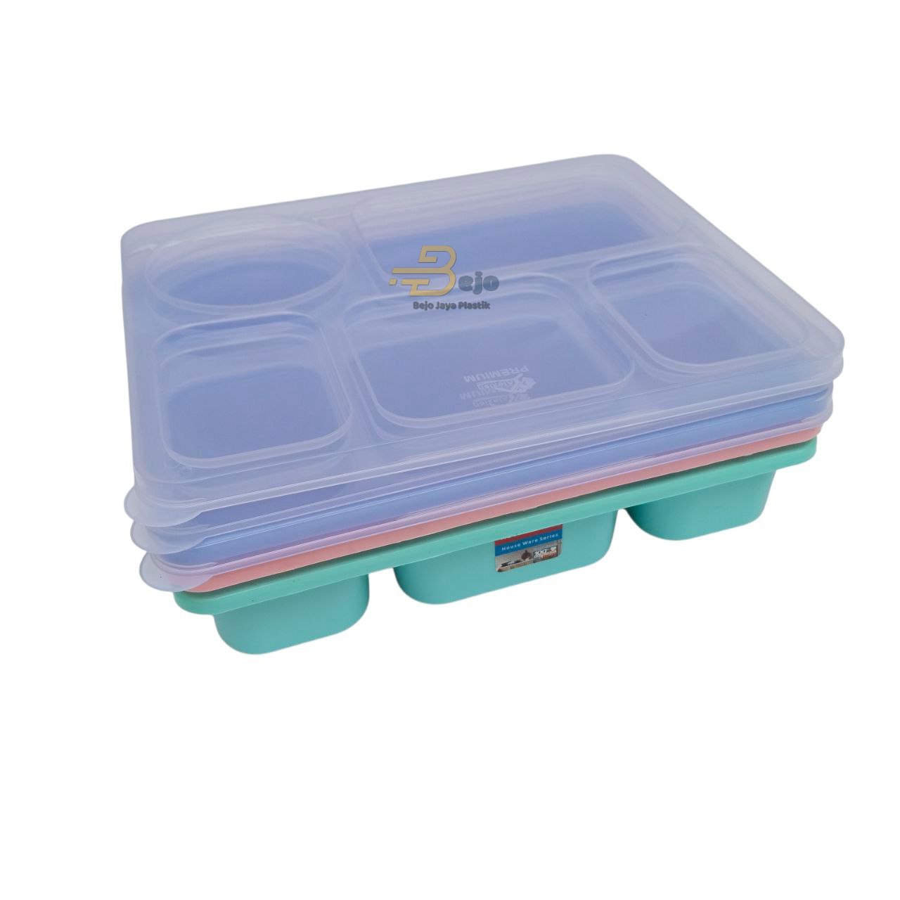 Lunch Box Catering Aiko Large Alexish adalah kotak bekal berukuran cukup besar dan memiliki 5 sekat – dengan desain menyerupai tepak makan standard program nasional MBG (Makan Bergizi Gratis) dari pemerintah. Bento kotak makan ini terbuat dari material bahan plastik ori murni PP5 food grade yang bebas BPA. Dengan 5 kompartemen anda bisa menempatkan nasi, sayur, lauk-pauk dan buah secara terpisah. Lunch box ini dapat ditumpuk dan dilengkapi dengan tutup yang rapat. Tempat bekal ini juga cocok untuk anda yang memiliki usaha katering makanan untuk sekolah dan kantor.