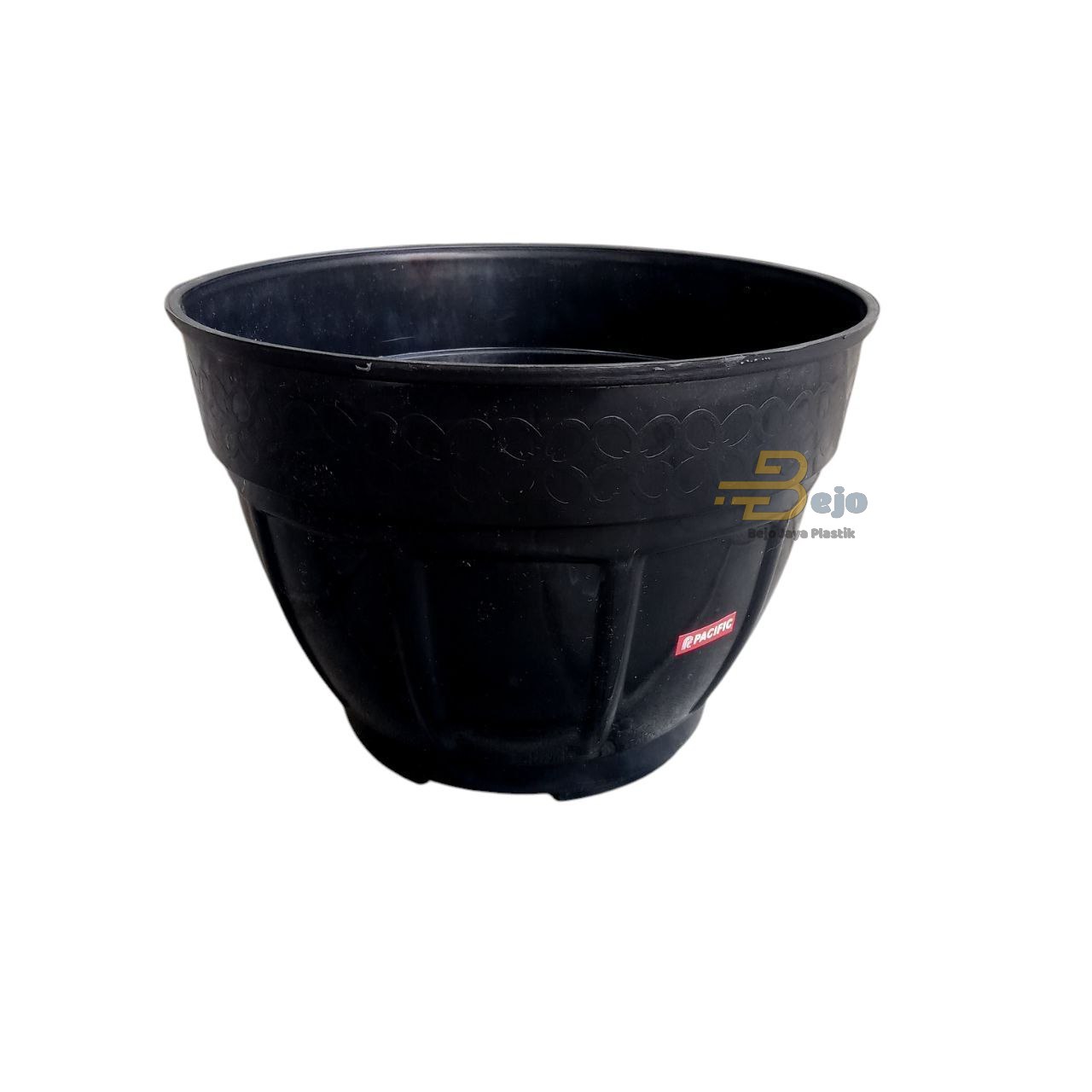 Pot 25 Hitam Pacific adalah pot plastik bulat dengan diameter riil 24.5 cm. Dilihat dari ukurannya, pot ini masih tergolong dalam pot kecil-sedang yang lebih cocok untuk wadah tumbuhan bunga / buah yang tidak besar. Sebagai pandangan, pot ini ideal untuk tanaman bunga mawar, adenium, melati, cabai, tomat dan lain-lain. Pot ini berdesain klasik namun tidak polos, terdapat tulangan dan motif emboss di sisi permukaan luarnya.