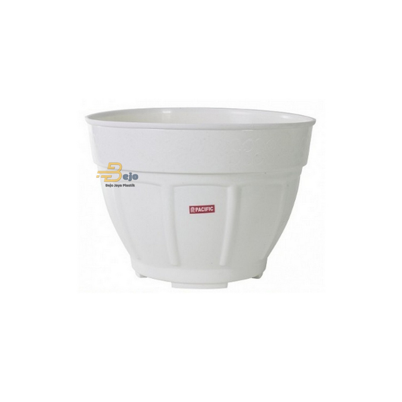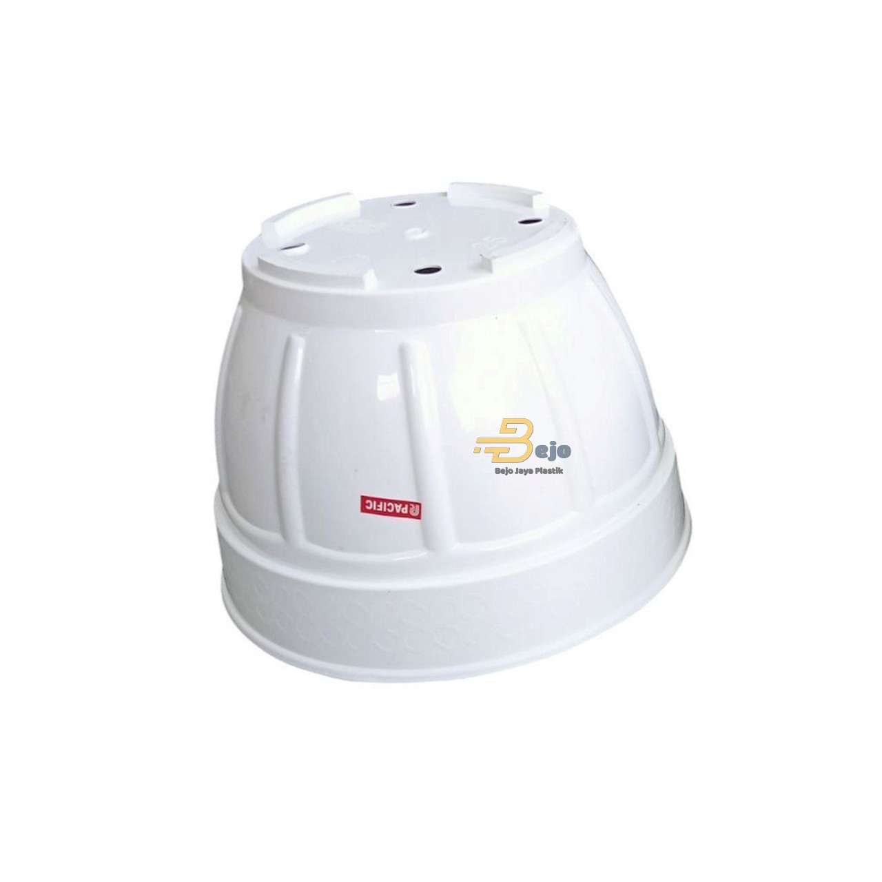 Pot 25 Putih Pacific adalah pot plastik berbentuk bulat dengan diameter bersih (atas) 24.5 cm dan tinggi 18 cm. Pot ukuran sedang ini sangat banyak digunakan karena tidak besar dan tidak terlalu kecil, serta cocok untuk beraneka ragam tanaman hias / bunga. Pada permukaan bagian luarnya terdapat motif ukir yang estetik dan garis tulangan vertikal yang membantu kekuatan dari pot ini.